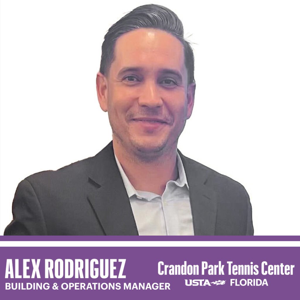 Alex Rodriguez serves as the Building and Operations Manager at the Crandon Park Tennis Center. In this role, he oversees daily facility operations while helping maintain a safe, efficient, and welcoming environment for players, coaches, and guests.
